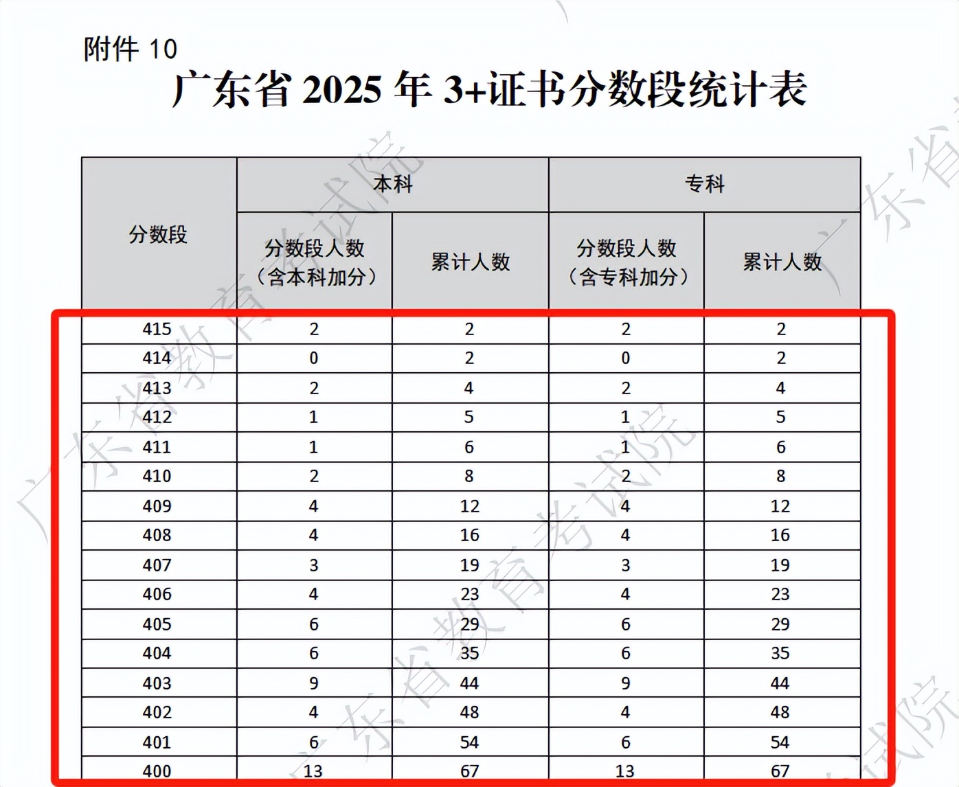 根据一分一段表可知,今年广东省3+证书考试的最高分为415分,那这2名415分考生来自哪个学校呢?