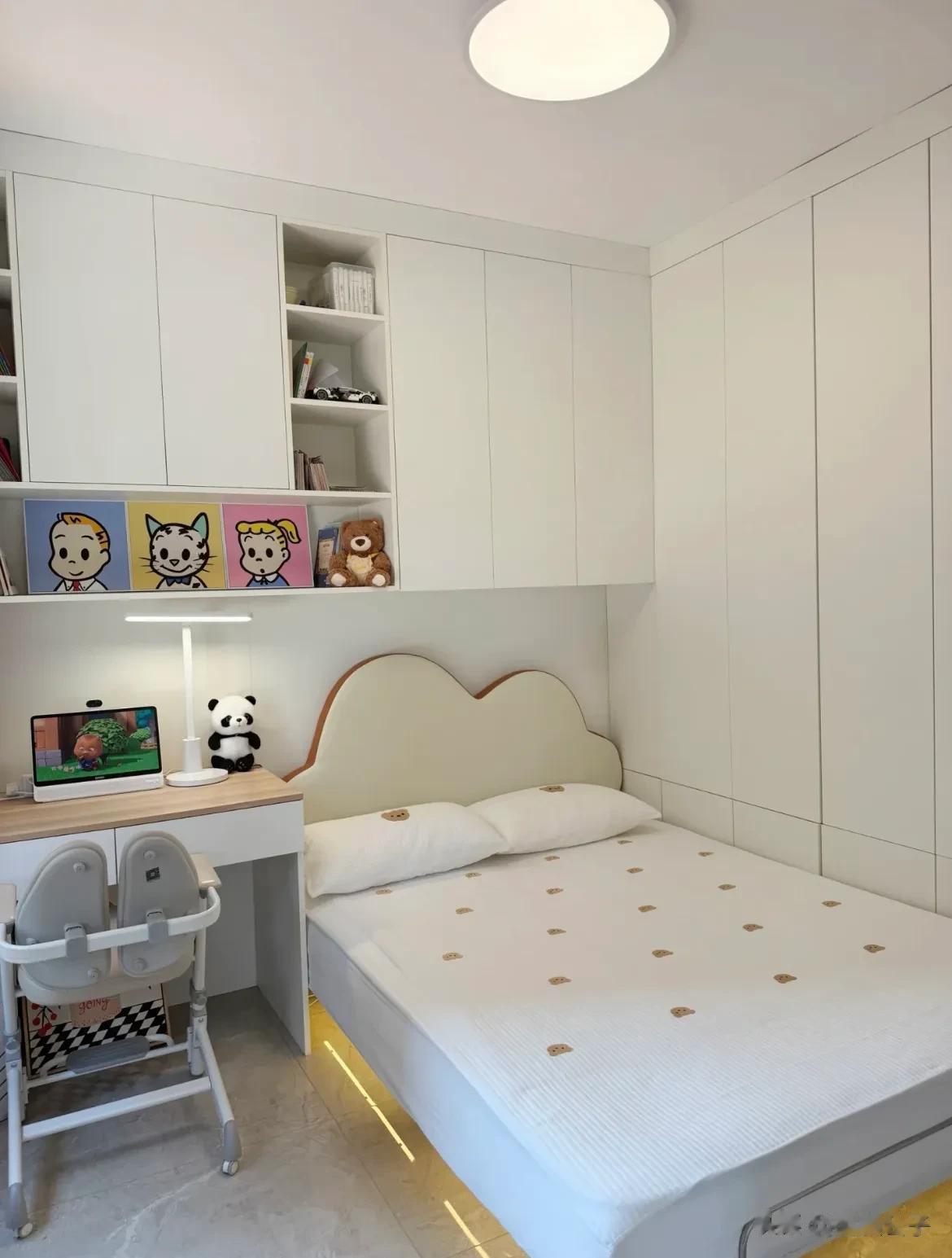儿童房做了半包围设计,书桌衣柜儿童床一体,虽然房间小但把能用的空间都用到了,在四线小城,能佳进这样的家很知足,轻硬装重软装的家,越看越喜欢啊