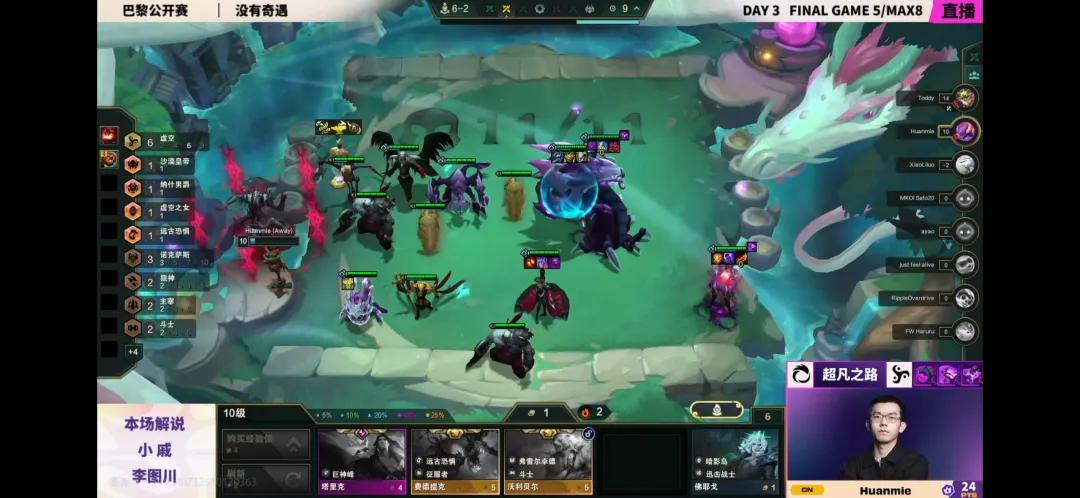 在最后几秒时,Toddy的阵容还差一张大龙,商店却已经没钱了。而顺利上十级的幻灭,果断转型虚空,并解锁梅尔,将阵容拉到最高上限,最终达成了登顶夺冠。