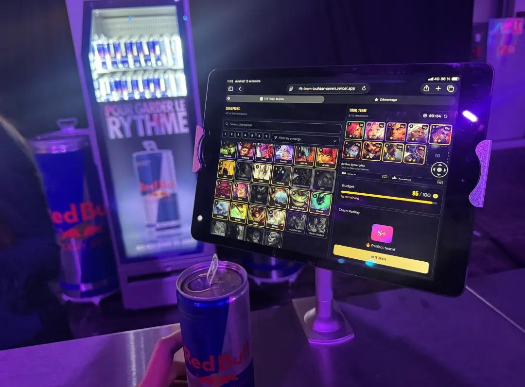 游戏并不复杂,给你100金币,让你买棋子、凑羁绊,只要羁绊的评分过了D级就能领一瓶红牛。你在平板电脑上凑出S+的欣喜,或许不比在赛场上玩出一个大羁绊的爽感差。