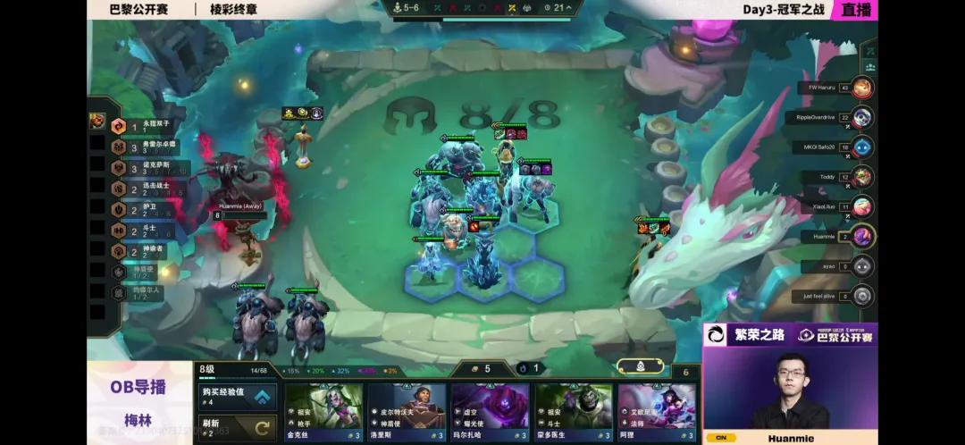 在现场,有选手在3-1阶段就从商店嫖到两星蕾欧娜,并顺手挂上了三件装备(4费黛安娜的解锁条件),这时黛安娜明明还未登场,但全场观众已经看明白,并且开始提前欢呼了。