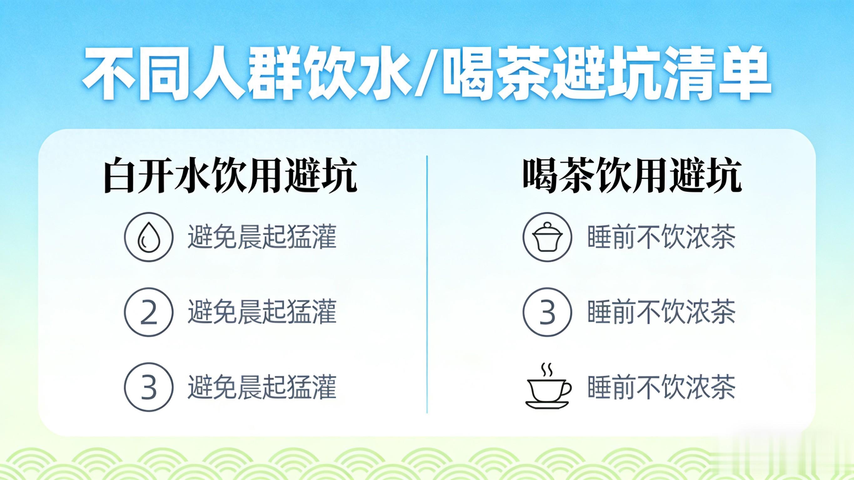 总之,健康的喝水方式,从来不是“非此即彼”,而是“适合自己”。白开水是基础,茶叶是锦上添花,根据自己的身体状况选,才能喝出好身体。