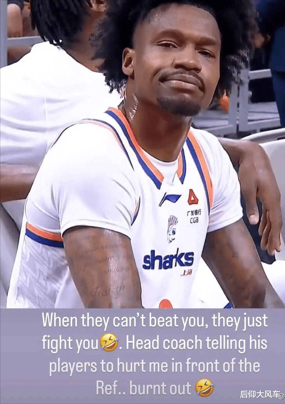 对于这个问题,不妨先来看看古德温赛后自己是怎么回复的,拿下比赛后的第一时间,古德温在社媒上配图并发文:When they can't beat you, they just fight you. Head coach telling his players to hurt me in front of the Ref.. burnt out。直译过来就是:当他们不能打败你时,他们就和你打,主教练告诉他的球员在裁判面前伤害我..