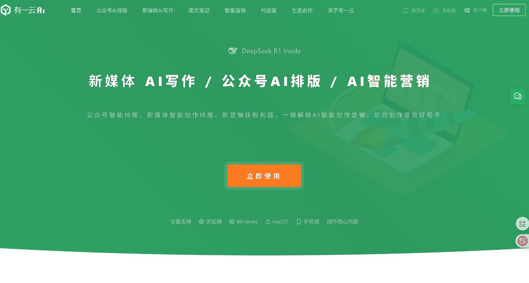 三、有一云AI编辑器:一键生成,少做多得在我试过的几十款编辑器里,有一云AI编辑器是为数不多做到“从写作到排版一体化”的工具。 它不是简单的文字编辑器,而是一个智能内容生产系统。