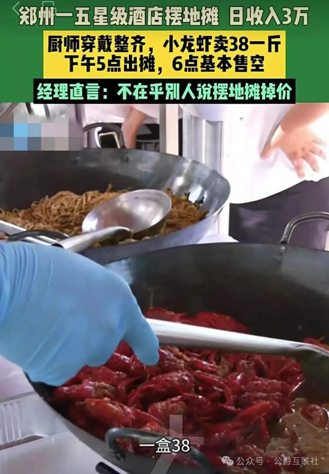 2025年高端酒店业的深度调整中,郑州永和铂爵国际酒店的"五星地摊"成为行业突围的典型案例。该酒店自6月24日起每日17:00在门口支摊,由戴高帽的厨师团队现场售卖38元/斤的小龙虾、48元/个的卤猪蹄等菜品,37分钟内售罄创下单日3万元营收,相当于平日门店收入的3-4倍, 新经济观察家公爵互联社主理人牛金鹏认为有三个方面促使该酒店的成功: