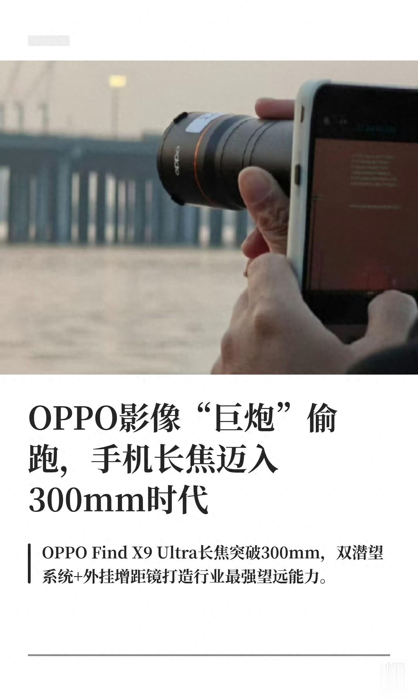 朋友们,刚看到OPPO Find X9 Ultra工程机带着个“巨炮”镜头在户外测试的图,我沉默了。这外接的300mm增距镜,让它看起来像个挂着望远镜的手机。参数很顶:双2亿像素主摄,双潜望长焦,代号“灯塔”,想把手机影像天花板捅穿。