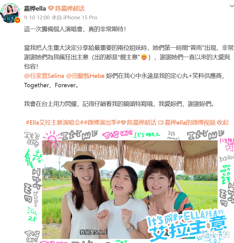 Ella是三人中唯一顺利结婚生子的成员,生活重心自然会偏向家庭,按正常推理,她的事业应该远不如其他两位成员,没想到如今十年过去,Ella居然成为了昔日S.H.E组合的顶流。
