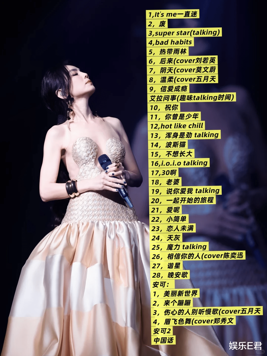 她连唱《中国话》《热带雨林》《保持微笑》等S.H.E金曲,其中《热带雨林》因过度投入,忘记录音观众合唱,幽默自嘲“好险差点自己唱完”,成为出圈名场面。《保持微笑》引发全场泪目,被粉丝称为“Encore最爱曲目”。