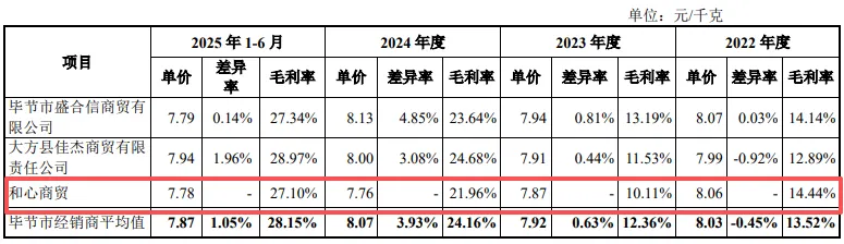 2022年至2025年上半年,公司向和心商贸销售乳制品及含乳饮料的金额分别达2,175.58万元、2,129.53万元、2,428.53万元、989.89万元,占各期营收比重介于1.16%至1.38%之间。