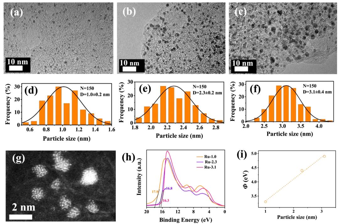 随着Ru粒径增大到3.1 nm,HER活性逐步降低。这种尺寸效应引起了作者的兴趣,并引出了对电子结构起源的探究。