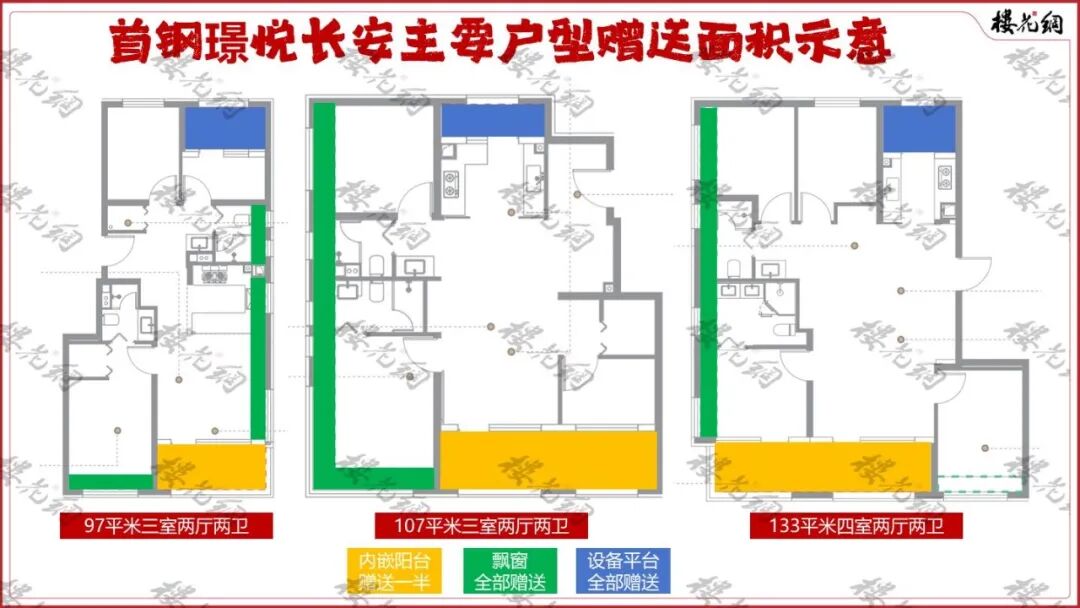 璟悦长安流速最快的户型,是97平和107平。前者已卖得七七八八,好房源还有,但不多;目前主要在售房源,为107平和133平楼王。