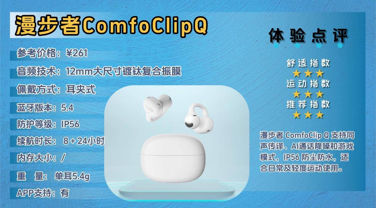款式九:【漫步者ComfoClipQ】