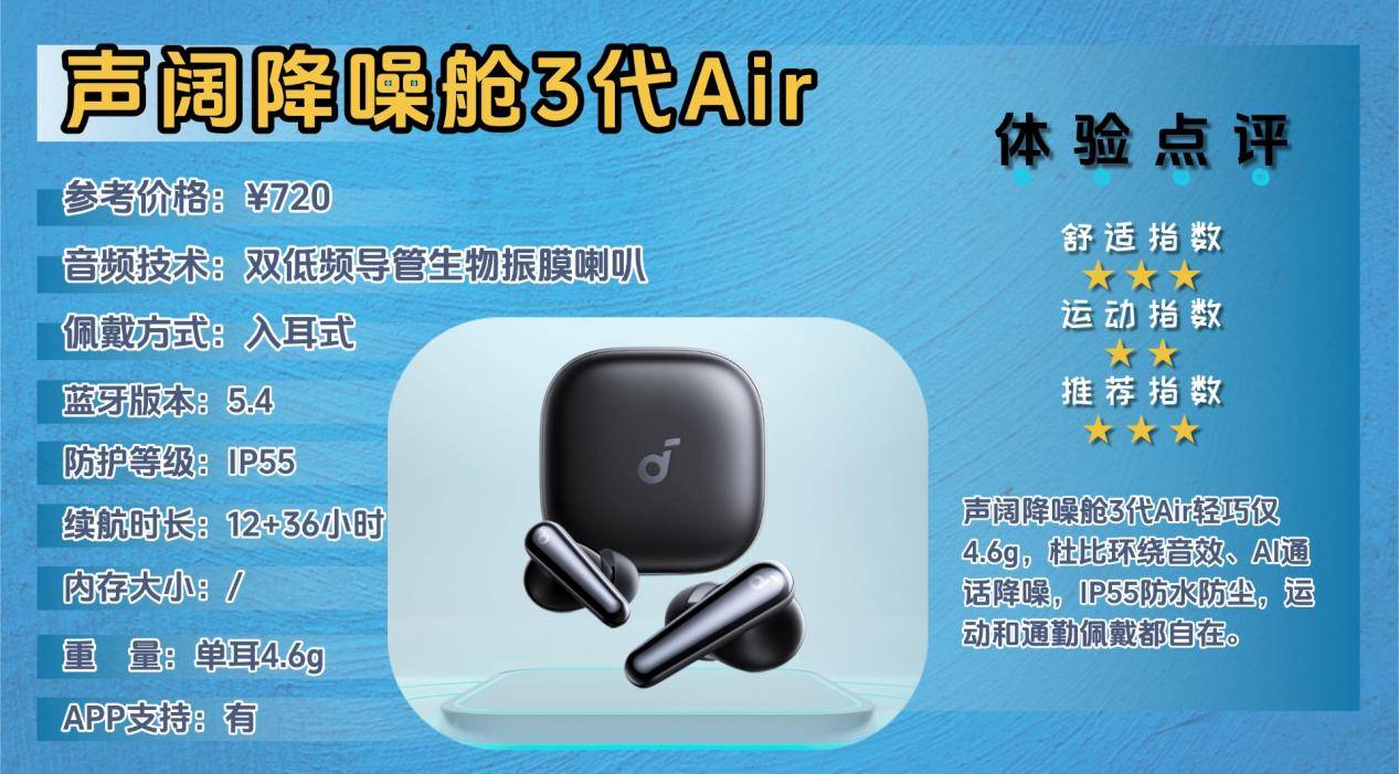 声阔降噪舱3代Air主打高品质通话与沉浸音效体验,适合日常通勤、办公以及轻度运动场景,兼顾便捷操控与智能功能。