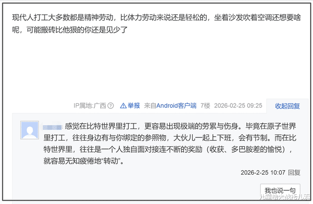 有人直言:游戏搬砖比现实上班还累。现实打工还有同事搭伙、摸鱼划水,虚拟世界里全是单打独斗,对着屏幕重复押镖、刷本、清日常,机械到麻木,不知不觉就熬了十几个小时,累到眼睛发花、腰杆僵硬,还没人给你算加班费。