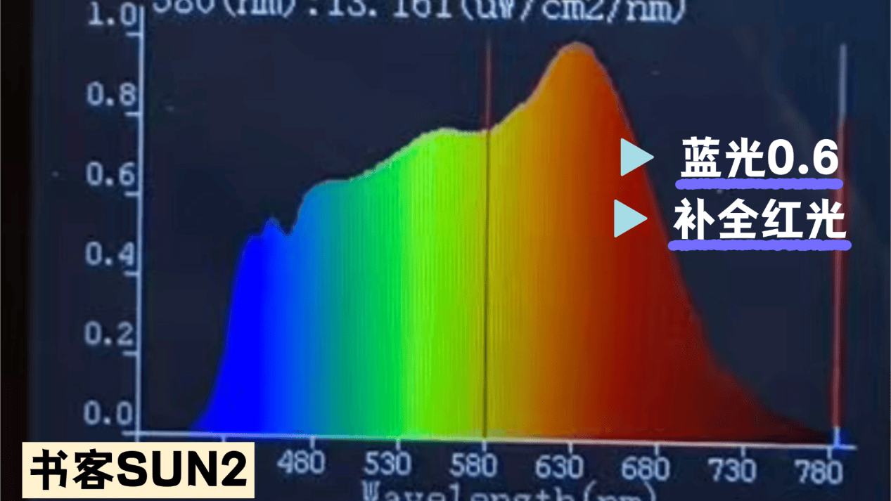 2、优选低蓝光且补全红光的全光谱护眼灯
