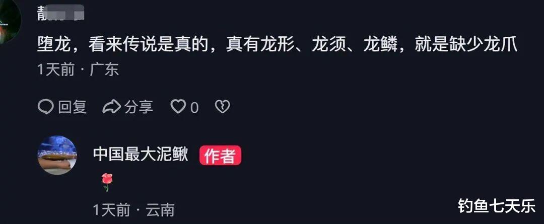 当男子把这条“龙形”泥鳅的视频,分享到网络后,围观网友也开始感叹:“堕龙”的传说真的应验了。