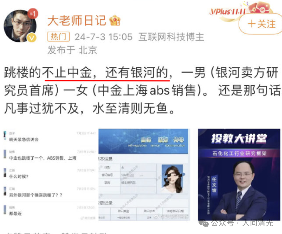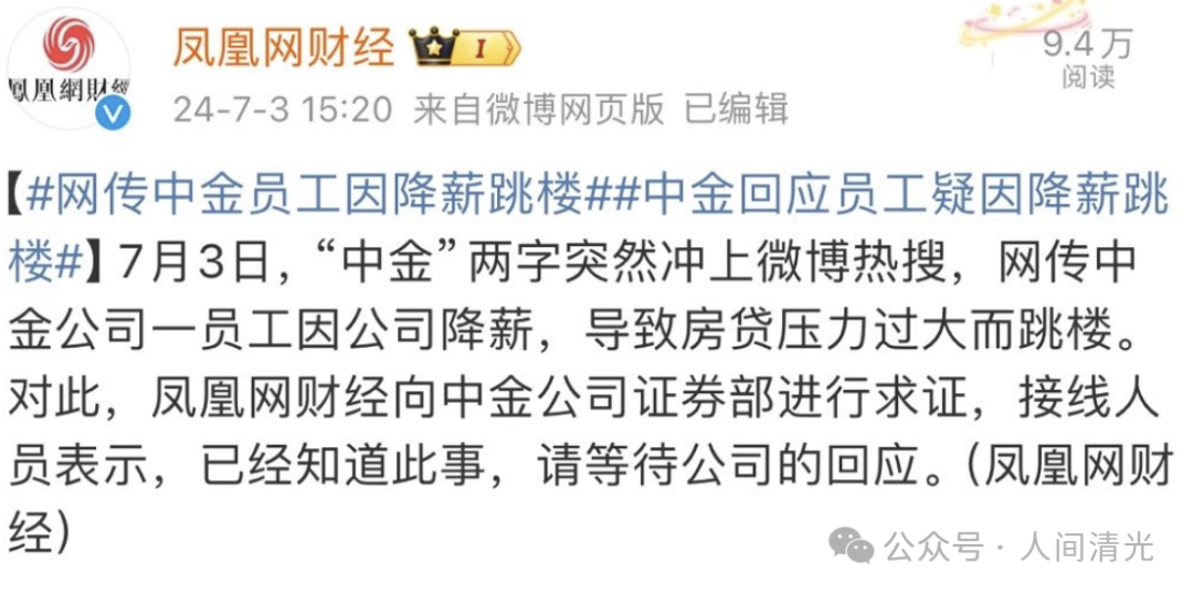 不过中金公司的最后一句话,耐人寻味:“对于网传我司员工跳楼谣言,希望大家尊重逝者隐私,不信谣、不传谣。”