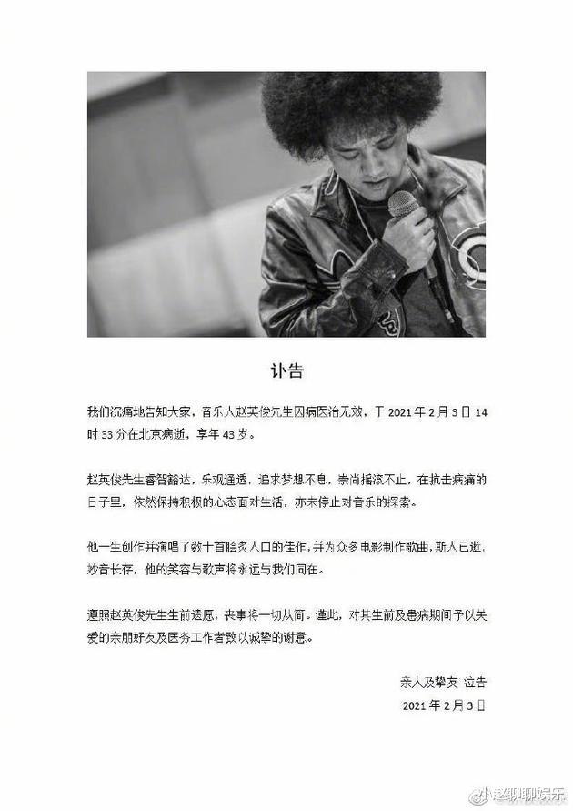 而他的家人也根据他的遗嘱,准备低调举办丧礼,人前不风光,人后很低调,这样有才华,还低调的人,真的让人觉得可惜,一起合作过的大鹏,更是直接发文表示想念,可以看的出来,大鹏对赵英俊的感情还是很深厚的。