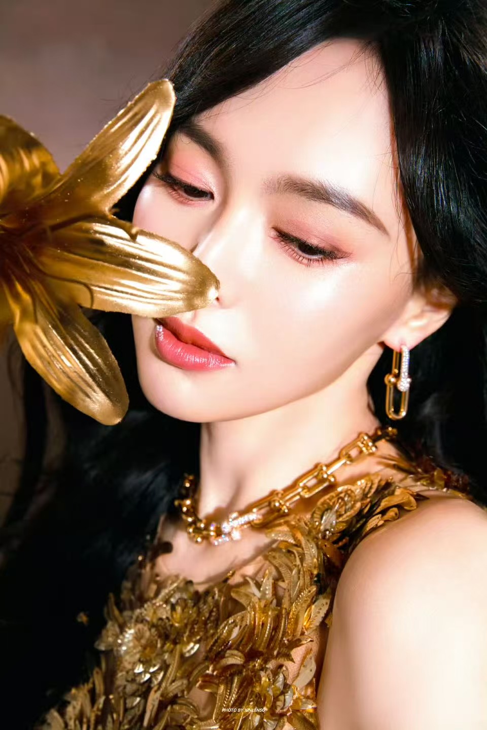 1月30日,她又飞到巴黎参加欧莱雅的全球品牌代言人年会,一袭金色刺绣开衩长裙展现出她的好身材和气场。