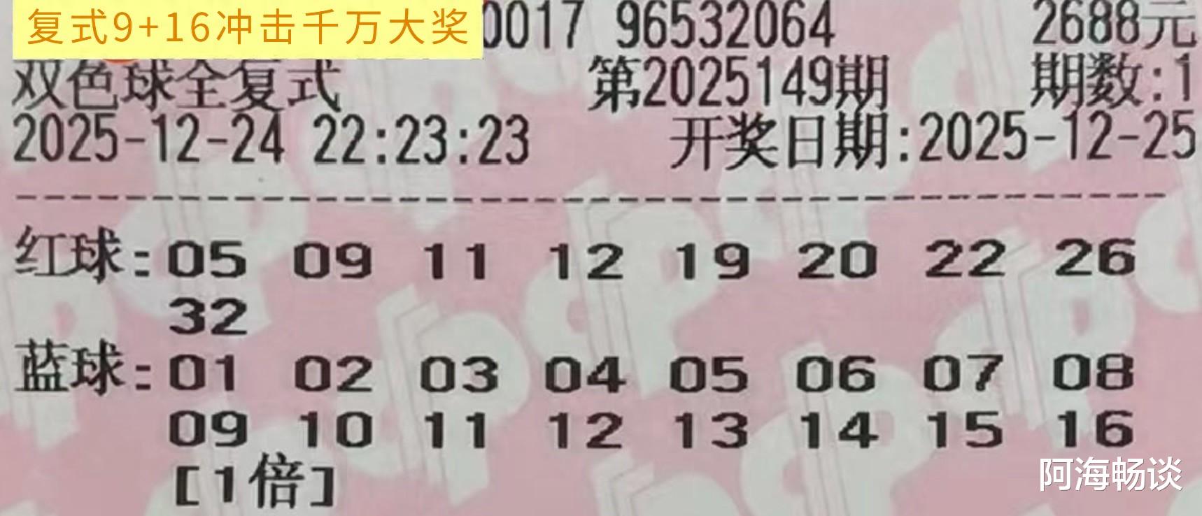 大家好!今天是12月25日,农历十一月初六,星期四。今晚即将迎来双色球第25149期开奖,不少人已经陆续晒出了自己的票面,期待好运降临。在欣赏本期票面前,我们先来回顾一下上期(25148期)的开奖结果:红球号码为3、4、9、10、15、22,蓝球为16。一等奖共开出8注,分别花落北京(1注)、河北(2注)、山西(1注)、辽宁(1注)、上海(2注)和江苏(1注)。接下来,就让我们一起看看本期的精彩票面。同时也提醒大家,保持一颗平常心,享受过程更重要。