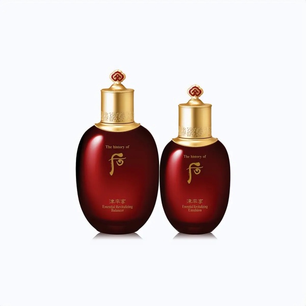 8. Whoo后津率享平颜套装其化妆水能够迅速渗透至肌肤底层,为干燥缺水的肌肤带来丰沛的水分滋养。乳液则富含多种植物精华,能在肌肤表面形成一层滋润的保护膜,锁住水分,长时间保持肌肤水润柔软。
