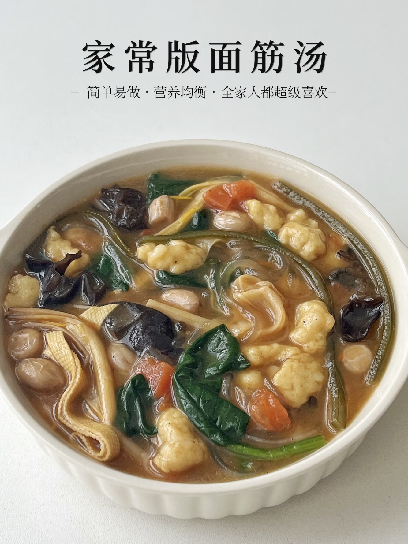 冬天不想大动干戈,又想来点热乎的?把厨房里的“边角料”统统扔进锅——红薯粉条、黄花菜、木耳、干张、海带,再让面筋当“海绵小霸王”吸饱汤汁,10分钟端出一锅“家常版面筋汤”:汤色奶白像被云朵吻过,面筋软到像豆花,配菜脆得像小鞭炮,一口下去,暖、鲜、滑、脆四连击,配米饭能秒变“汤泡饭神器”,空口喝也停不下勺子。成本不到10块,做法简单到离谱,现在就把汤勺挥起来!
