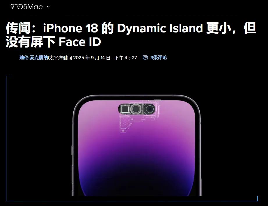 此外还有消息称,到明年iPhone 18系列,则采用屏下Face ID技术,或彻底取消灵动岛。但在近日,这一说法出现了反转。