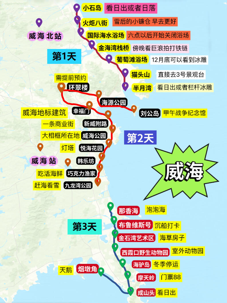 威海的雪季真的很顶,一份手绘地图不仅不绕路,还能根据景点安排路线和住宿,计划元旦去的可以直接看这篇手绘地图攻略,省心又省钱!