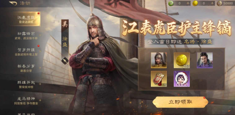 七日狂欢活动更是诚意满满。第二天就直接送橙将孙策,孙策可是三国里响当当的人物,武力值超高,有了他加入你的队伍,战斗力直接上一个台阶。后续的活动还会赠送自选战法包等道具,战法在战斗中起着至关重要的作用,不同的战法搭配能让你的队伍发挥出不一样的效果。