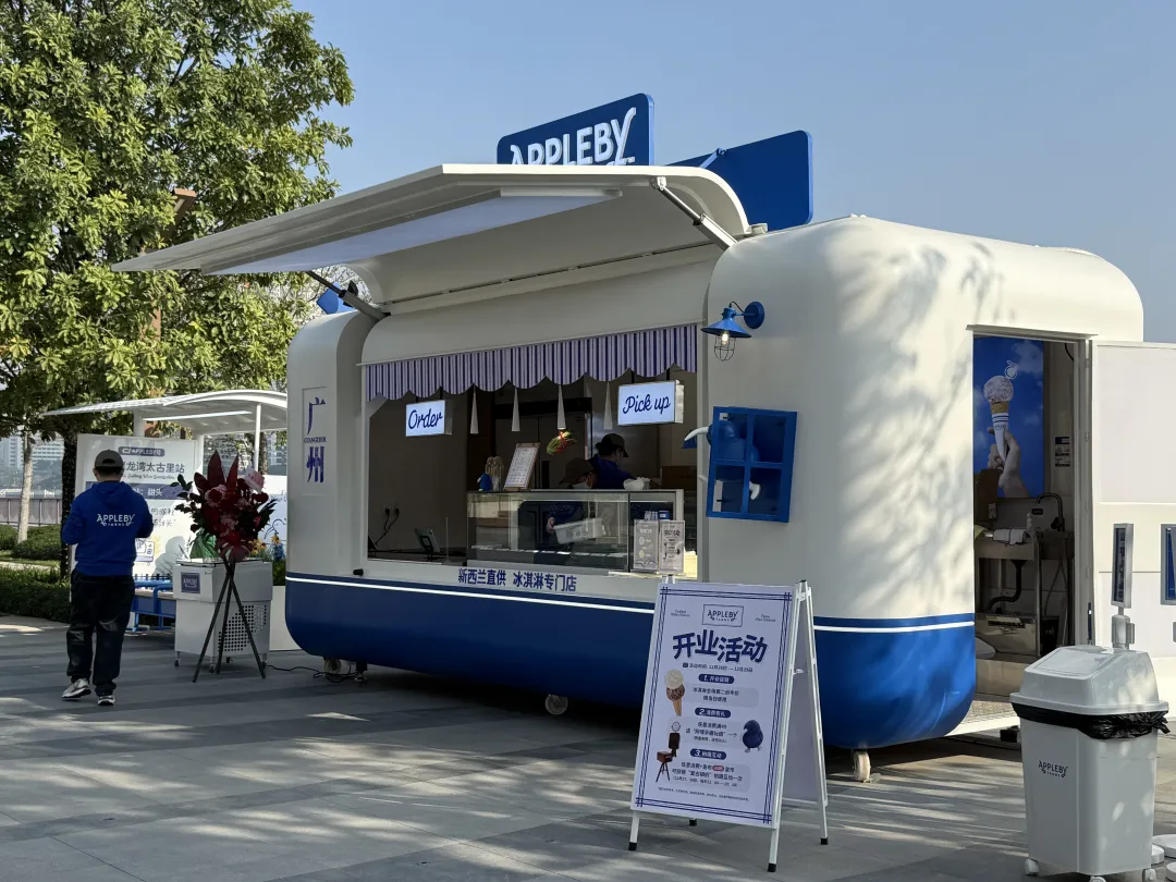 江边也有一家冰淇淋店开业了,风格好像动漫里的冰淇淋车