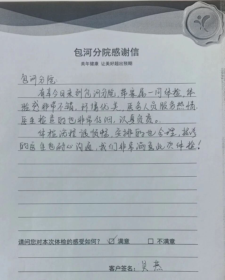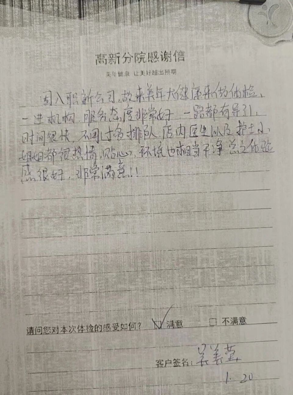 不止天鹅湖分院的高光时刻,上周合肥美年各分院也陆续收到了客户的手写感谢信,字里行间满是认可与温情,每一封都在回答#体检哪家服务好#,也印证了#合肥体检人少去哪?# 选择美年的正确性——淡季体检无需拥挤,服务体验更上一层楼。