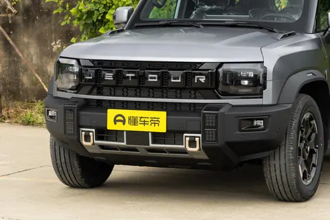 JETOUR 立体格栅前脸辨识度拉满,搭配直瀑贯穿式尾灯,即便雨天等恶劣天气,后方车辆也能清晰识别其轨迹。此次试驾的公路灰专属哑光漆面,触感细腻自带低调质感,不用额外改装就很有格调。车身侧面笔直线条搭配固定式脚踏板,车顶行李架与前后翼子板凸出的宽体设计,进一步强化了力量感;A/B/C/D 柱熏黑处理与尾部 “小书包” 装饰,又增添了年轻时尚感,兼顾硬派属性与审美需求。