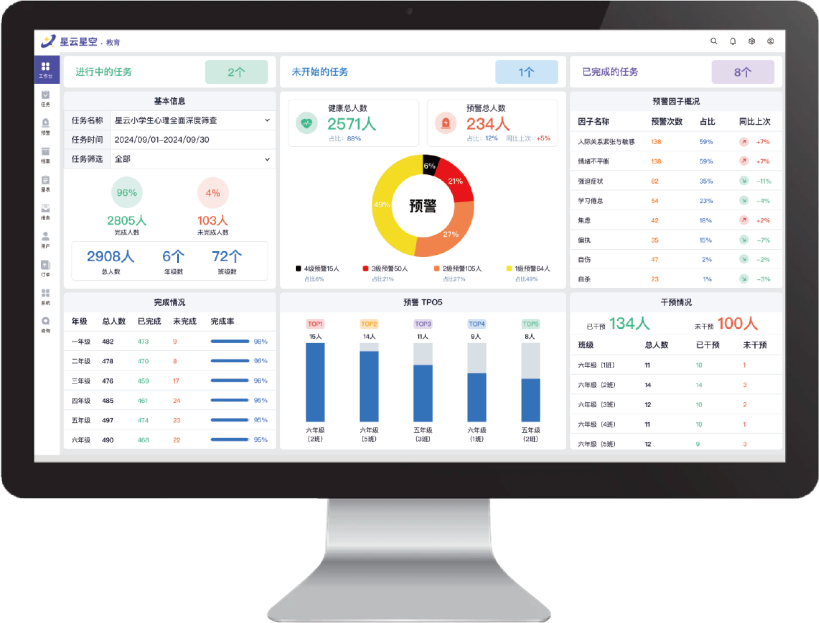 其核心功能和亮点在于:①量表测评:包括140+国际标准心理量表,可支持数万人同步在线测评,即时生成团体与个人报告,快速建立全校心理档案,实现早期风险识别。②AI深度评估:基于面部情绪识别、DSM-5诊断框架与生物-心理-社会评估理论、结合临床大语言模型,通过数字人互动,进行全面、深入的的心理健康评估。经广东省精神卫生中心验证,这个系统的评估准确率高达92%。③分层干预体系:根据结果自动生成一到四级预警,并按照不同风险等级匹配轻中重度的个性化干预任务。④AI心理聊愈:通过自研的垂直领域心理大模型星云星空大模型PsyLLM(该模型在全球榜单能力中,综合得分89.9,位居第一)和多模态技术,为学生提供专业、有效的心理咨询服务。⑤教学赋能:该系统还可以为心理教师和班主任提供系统化心理教育课程资源,能够有效推动心理教育从补救性干预走向发展性提升。