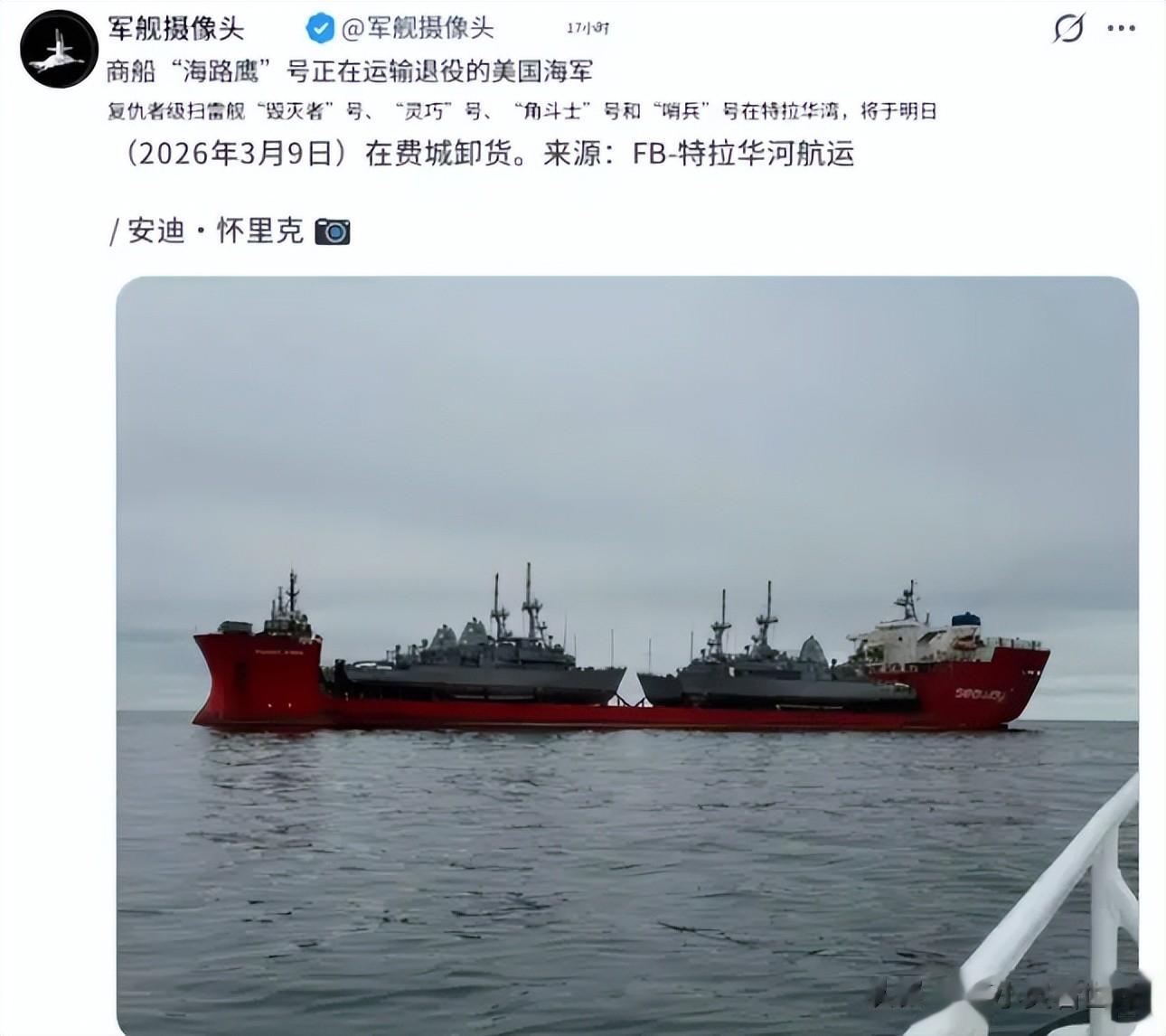 顺便说一句,更尴尬的是,之前美军一直在中东地区保持了四艘扫雷舰,结果就在前几天,退役拖回美国本土了。