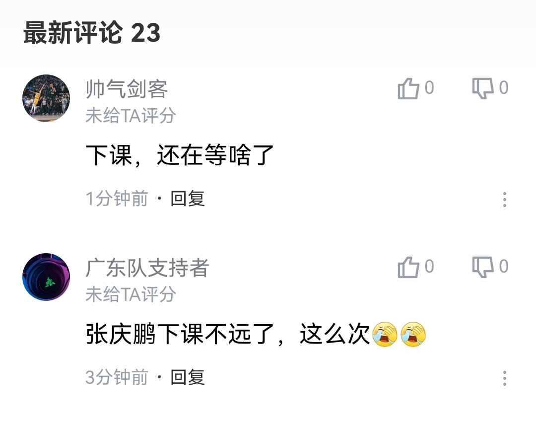 赛后球迷在评论区,呼吁张庆鹏下课。
