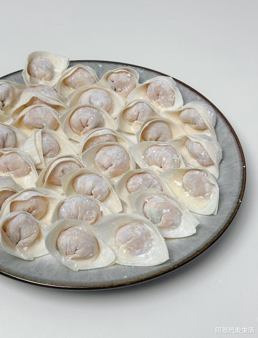 小技巧:包好的馄饨要放在撒了面粉的盘子上,防止粘底。如果一次包得多,可以放入冰箱冷冻,冻硬后装袋保存,随吃随取。