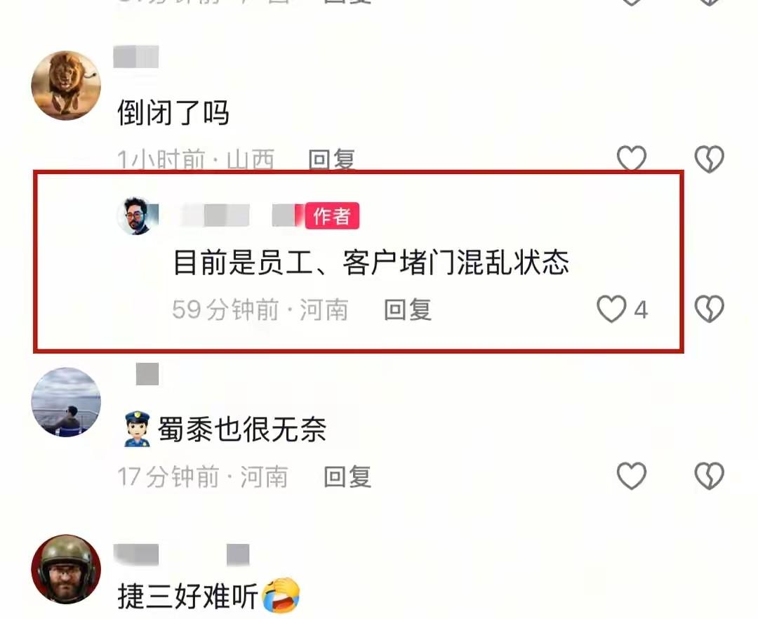 有网友在抖音留言:“之前还看她们直播说保时捷稳,现在店没了,我们的钱怎么办?”还有网友说:“高端品牌也靠不住,以后买车得先查店的经营状况”。