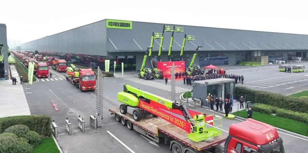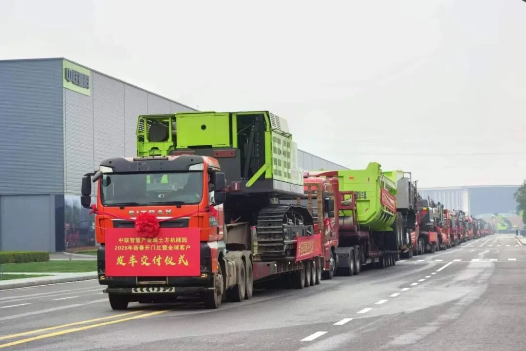 2月25日,中联重科全国各园区同频联动,举行2026年开门红活动暨发车仪式。起重机械、混凝土机械、农业机械、应急装备、新材料等合计超1.5万台(套)各类设备发往国内外市场,总金额约85亿元。