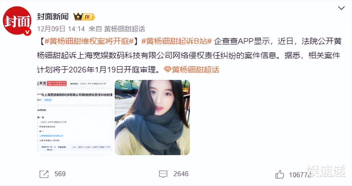 此案件将在明年的1月19日开庭审理,如果黄杨钿甜获胜,或许可以为后续追责侵权人铺路。
