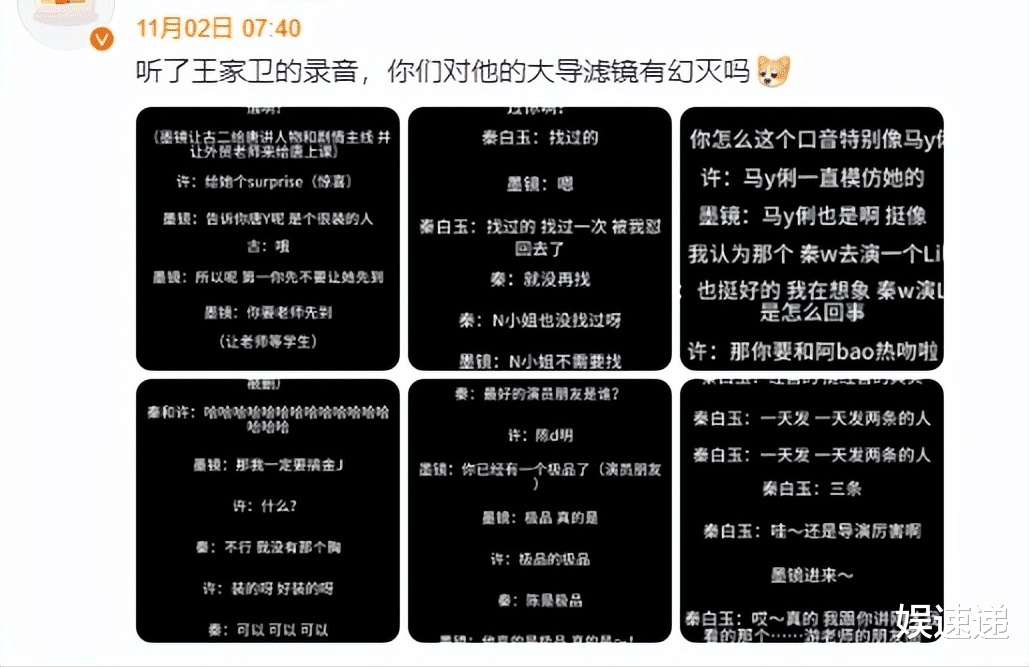 第九名:#王家卫录音#2025你必须知道的热搜,当属编剧古二对王家卫和秦雯的录音曝光。
