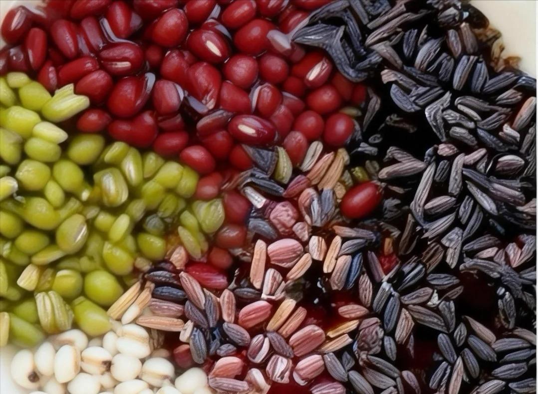 食材:糯米40 克、黑米、薏仁米、莲子、花生都各 15 克、红豆和绿豆稍微多来点各 25 克、9 颗红枣,水 750 毫升、冰糖 25 克