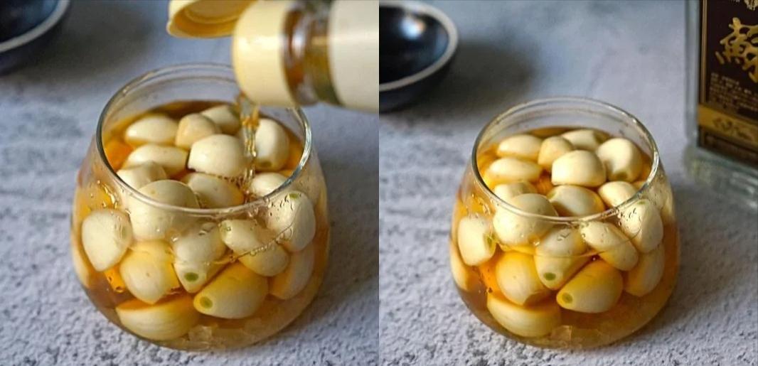 食材:大蒜头、米醋、冰糖、高浓度白酒,醋不管是米醋还是陈醋,只要是酿制的都成