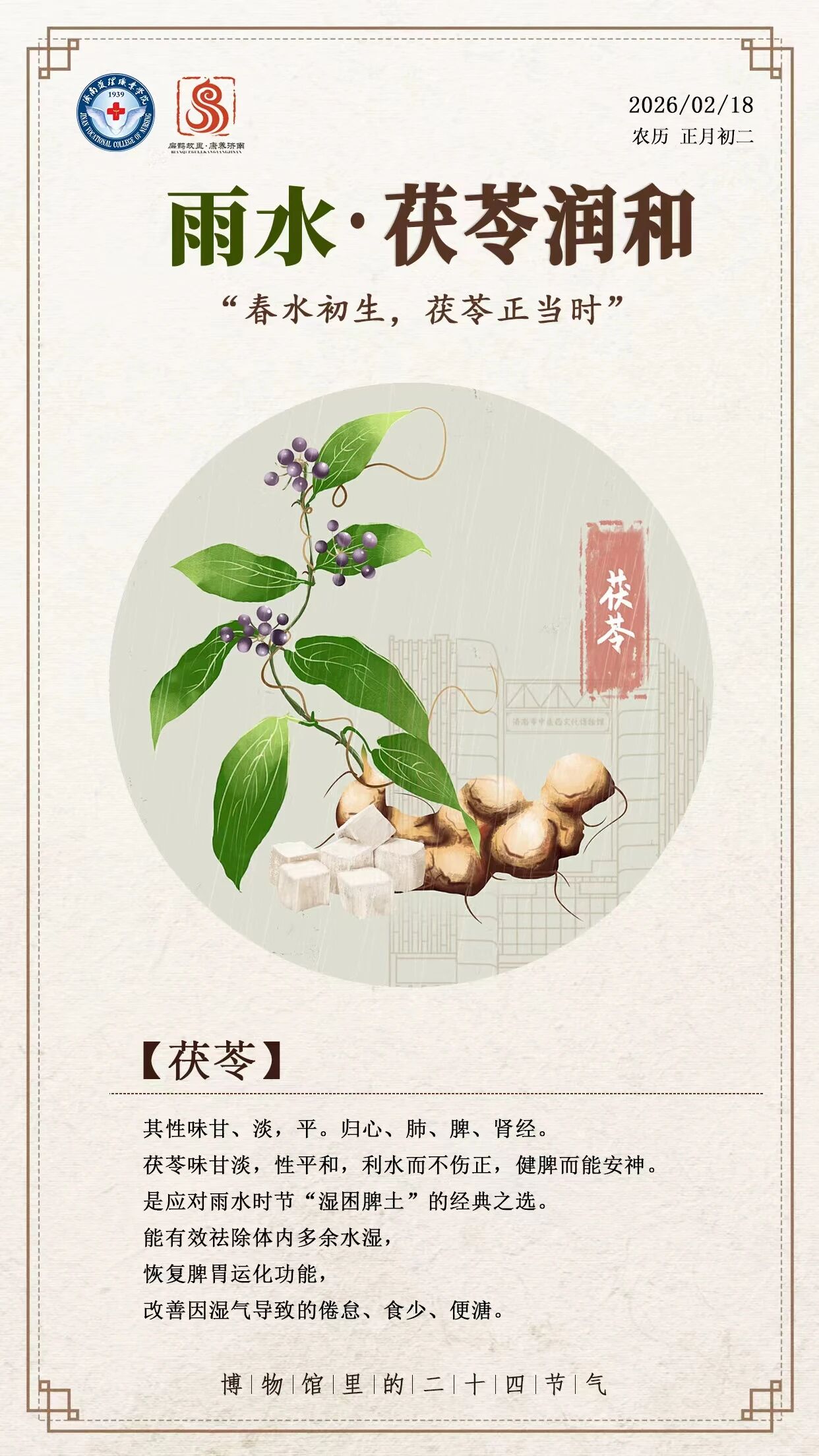 雨水一日,万物萌动。愿君如茯苓般淡泊守中,健脾祛湿以安身形;似春草般破土而生,顺应天时以养正气。让我们在这润物无声的时节里,调摄身心,静待春暖花开。