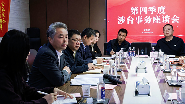 12月9日,省委台办在大唐领域控股曲江运营中心组织召开第四季度涉台事务座谈会。会议聚焦“扩大双向交流,密切陕台融合发展”主题,邀请东航西北分公司、中国启原工程设计研究院有限公司、美光科技有限公司(Micron Technology, Inc.)、大唐领域控股等20多位在陕重点企业代表参会。省委台办主任姚金川出席座谈会并讲话。