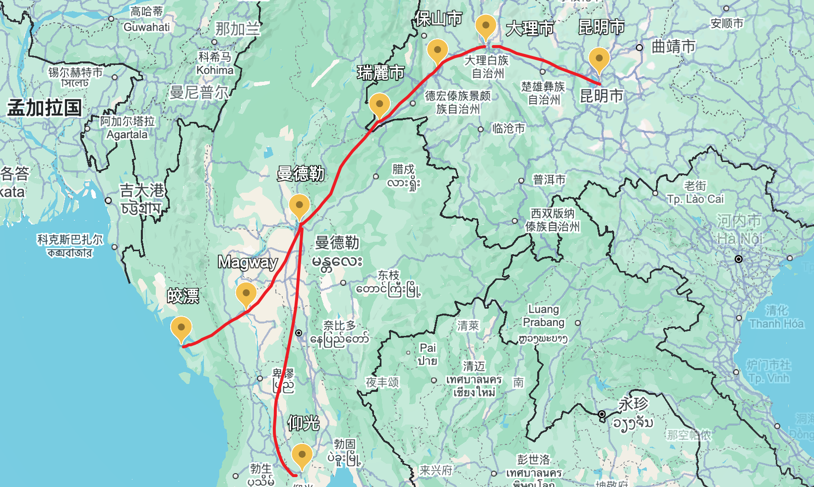 要是江心坡还属于中国,边界会推进到伊洛瓦底江中下游,不过还是到不了印度洋海岸(缅甸南部还是独立国家)。但通过近些年来的外交途径,中国得到了: