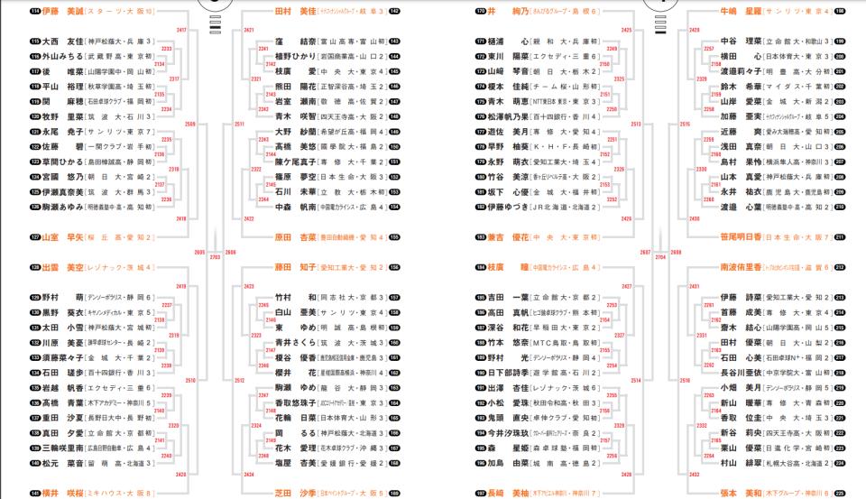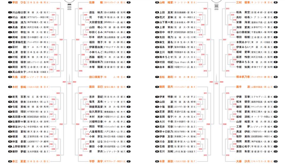 日本的乒乓球全国锦标赛创办于1935年,明年最新一届赛事的女单签表有225个签位,做得非常详细。女单1/4区头号种子就是早田希娜,这个区的二号种子就是平野美宇,该区还有削球名将佐藤瞳。女单2/4区有桥本帆乃香、牧原美悠以及今年很火的大藤沙月,竞争很激烈。女单3/4区有伊藤美诚、芝田沙季,女单4/4区有长崎美柚、张本美和。