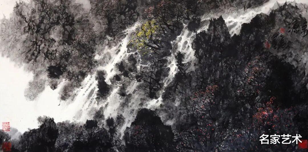 刘人岛先生在长期实践中,形成了独具个性的“人岛皴”与“人岛肌理”,其笔法墨韵在传统基础上融合现代审美,使画面既具山水的雄浑气魄,又富含细腻的情感表达,生动诠释了谢赫六法中“气韵生动”的艺术境界。