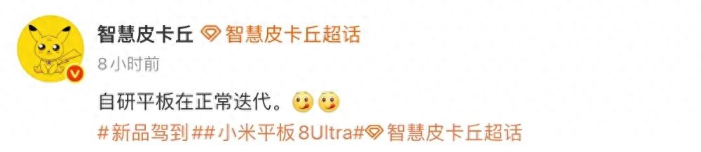 博主@智慧皮卡丘 今日的一份爆料中提到,“自研平板在正常迭代。”其中没有详细的产品系列信息,但结合话题标签来看其指的有可能是小米平板8 Ultra。