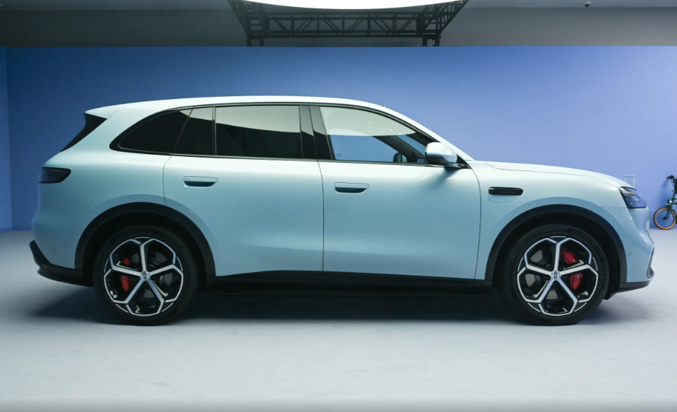 车身侧面造型就比较常规了,不少设计都考虑到了降低车身风阻系数,半隐藏式门把手兼顾美观性和实用性,轮毂造型有多种可选,熏黑设计配合红色刹车卡钳,看起来还是很显眼的。入门就配备了21英寸轮圈,20英寸轮圈则有多种样式可选,部分车型还配备了电吸门,开启车门的瞬间,电动脚踏也会自动放下,问界M6共提供七种车漆颜色,消费者根据个人喜好选择就可以了。