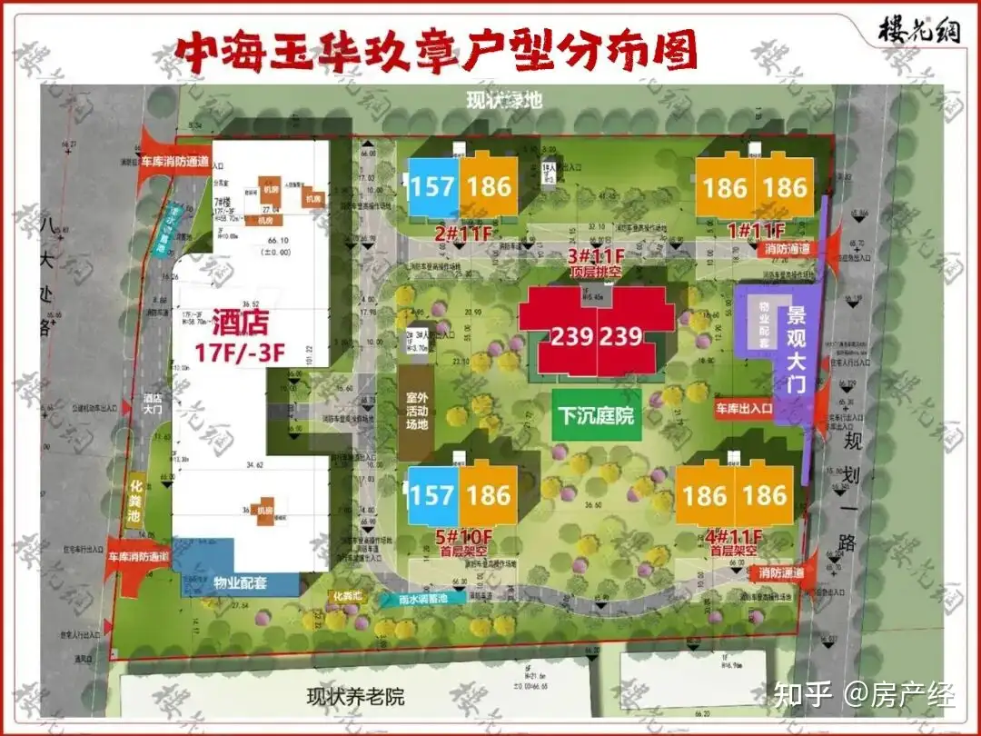 3#和6#,更处在整个小区正中的中轴线上,视野不错;8#则靠近小区的下沉会所,较前两栋位置,略微差些。